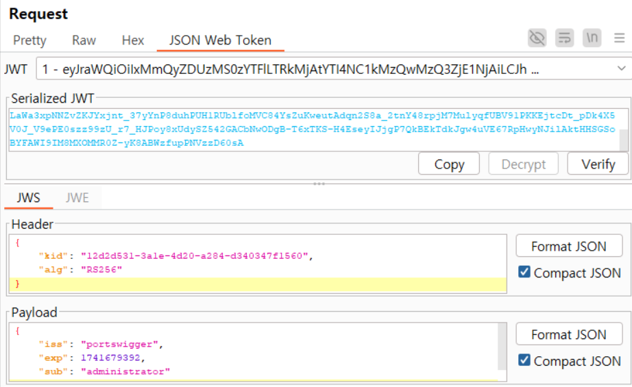 JWT Editor가 아직 작동이 안 돼서 구글링으로 툴을 찾아서 했음