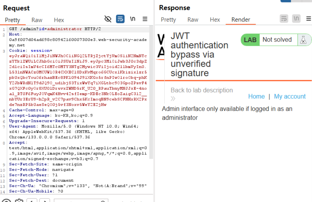 이번 랩은 세션을 JWT 기반으로 관리하고, JWT의 시그니처를 검증하지 않는 취약한 서버다