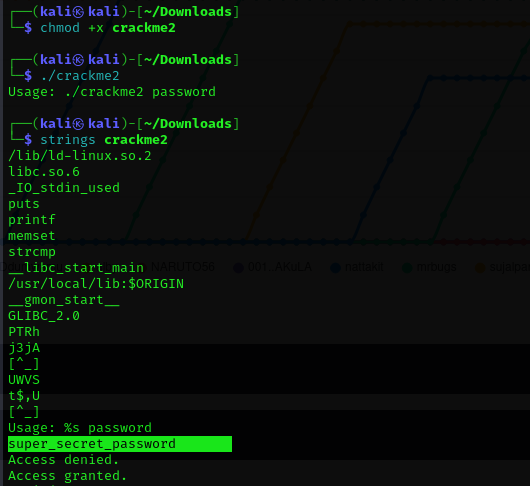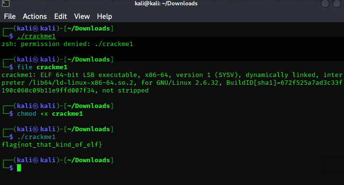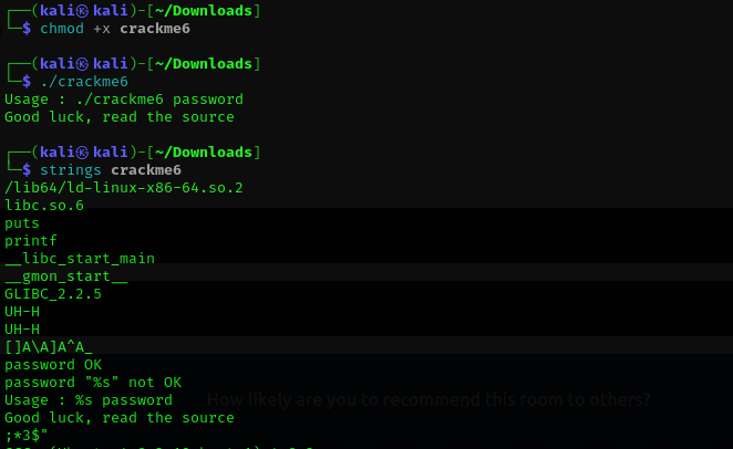 파일 실행권한을 추가하고 바로 ./crackme1 이렇게 실행하니까 바로 플래그를 찾았다