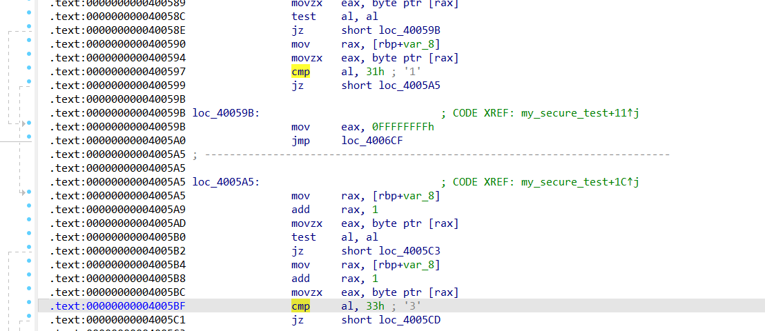 어셈블리어 부분을 살펴보다가 여러 섹션들에 cmp 연산자가 반복적으로 나타난다