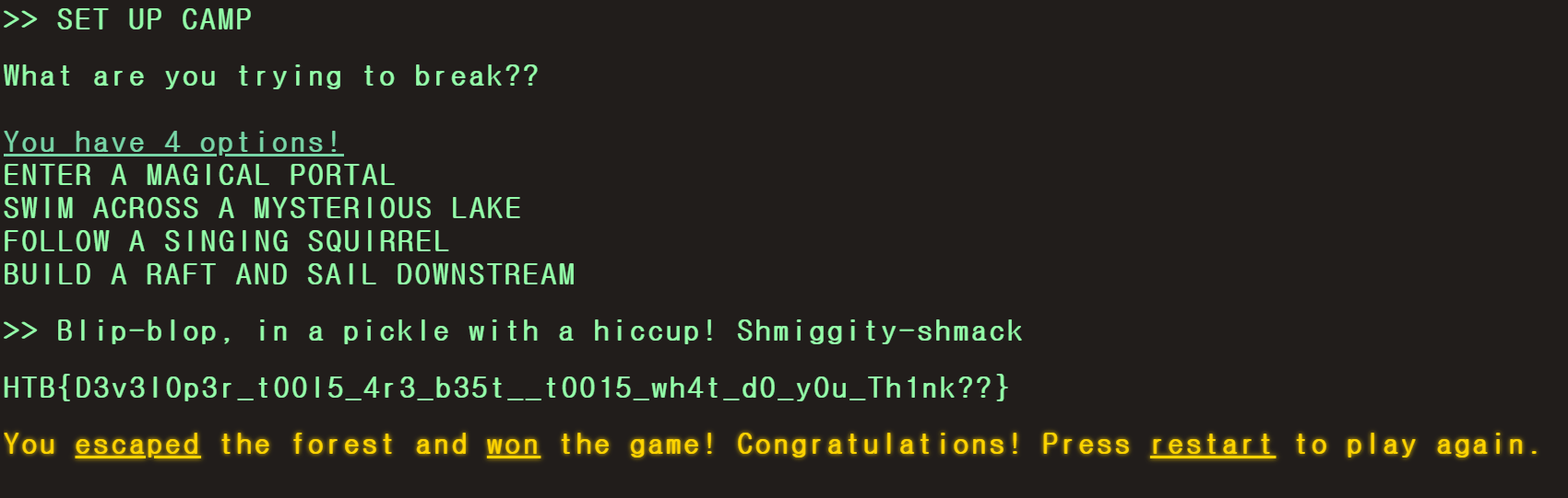 옵션 선택란에 위의 텍스트를 입력하니 HTB{flag} 형식의 플래그를 찾았다