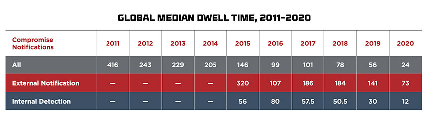 해마다 줄어들고 있으며 2020년에는 24일 정도이다. 차단과 방어만큼 사전 탐지가 중요하다는 걸 알 수 있다