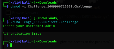 디컴파일하기 전에 칼리리눅스에서 파일을 실행했다