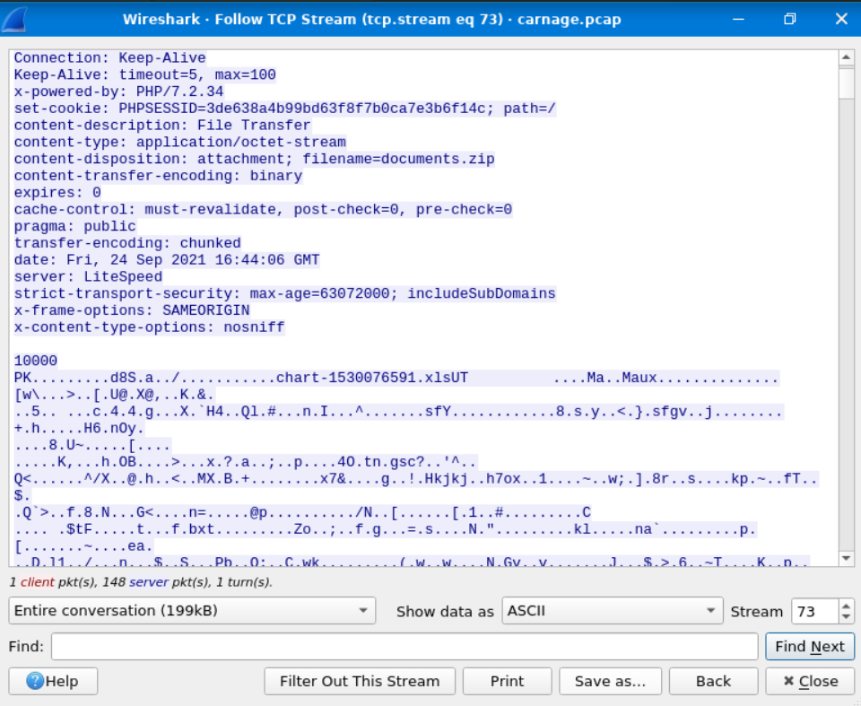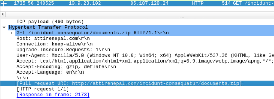 GET 메소드를 사용해서 documents.zip 파일을 다운로드 받은게 보인다