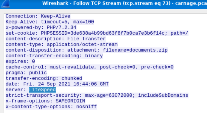 5. What is the name of the webserver of the malicious IP from which the zip file was downloaded?
