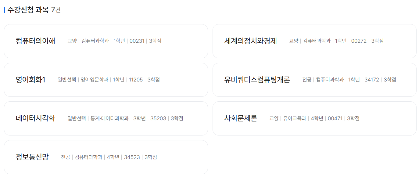 여튼 2025년도 1학기 수강신청을 완료했는데