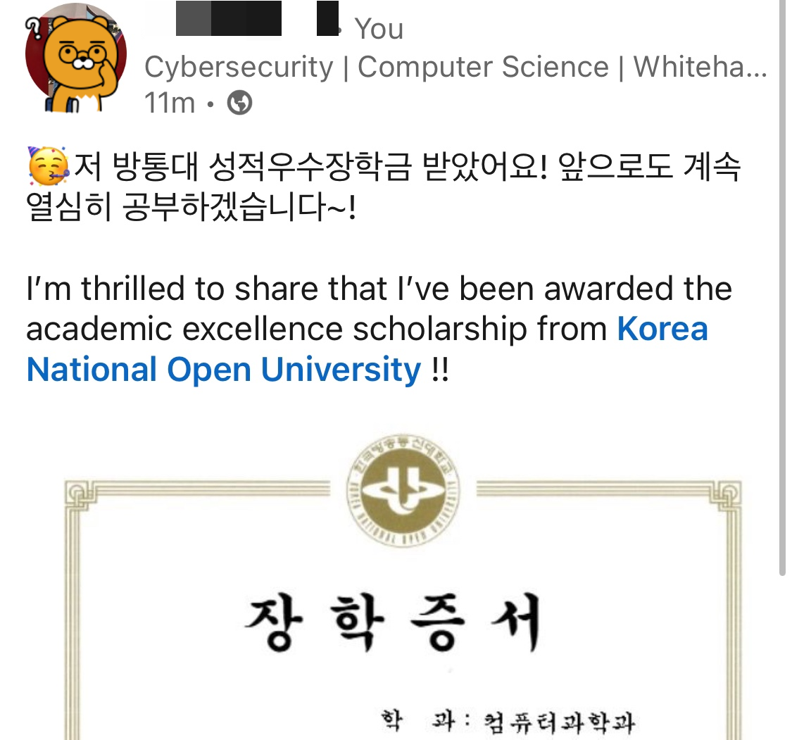 너무 기분좋아서 링크드인에도 바로 올렸어요~~