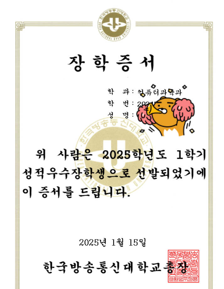 이번 학기에도 성적우수장학금 목표로 해보겠습니다