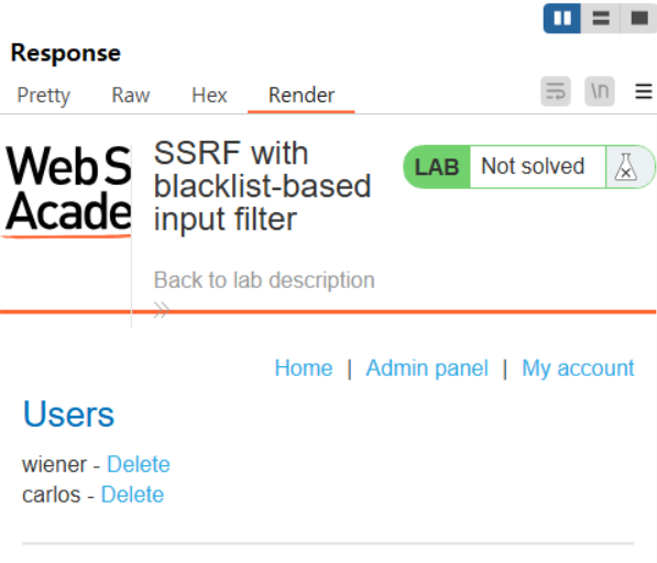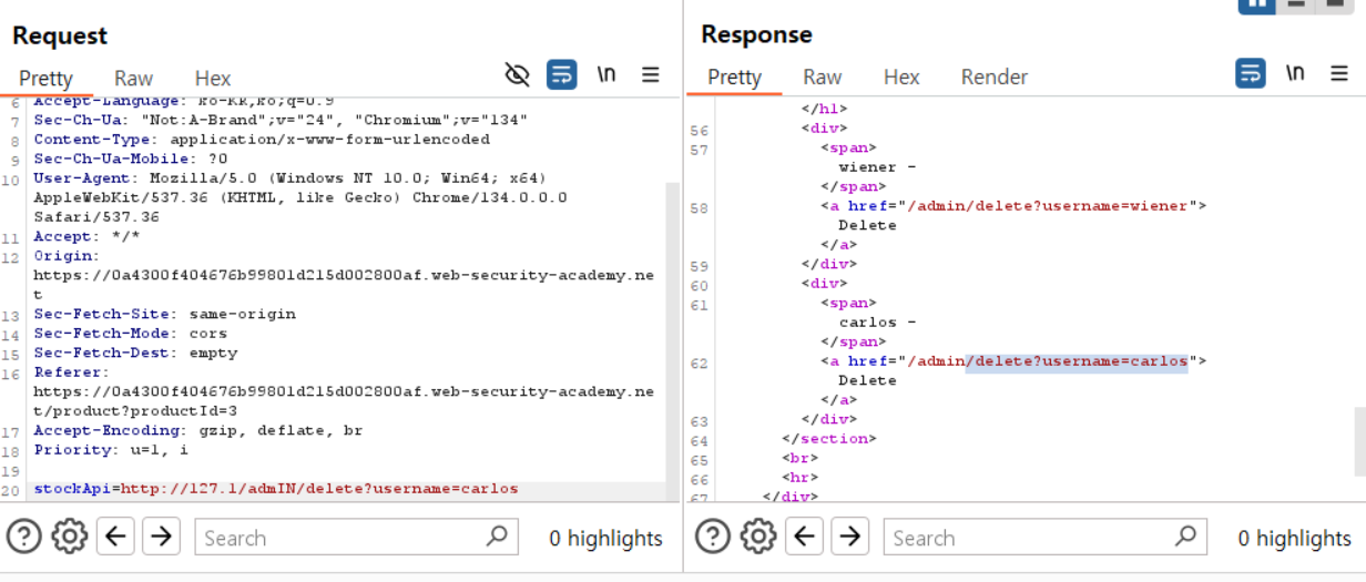 /admIN/delete?username=carlos 를 stockApi 파라미터 값에 넣음