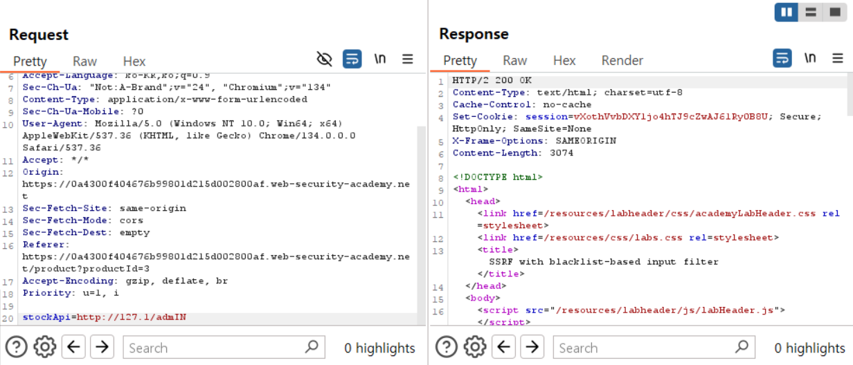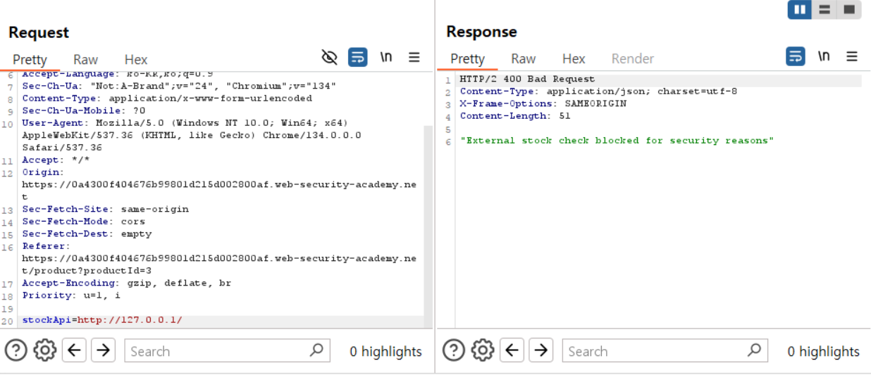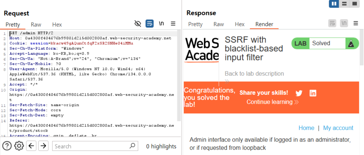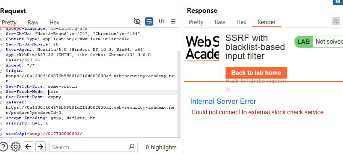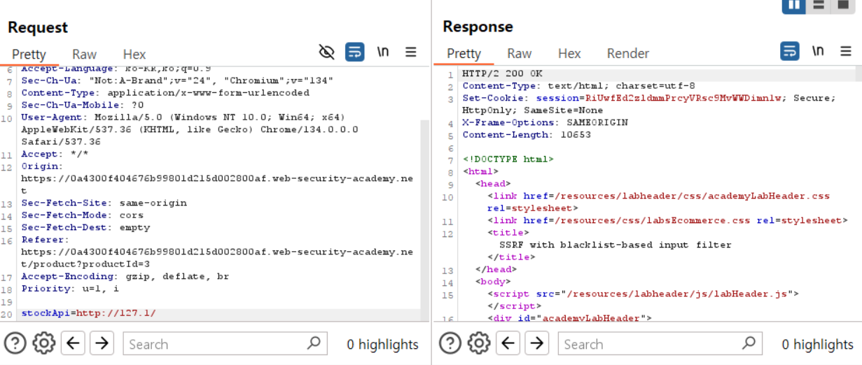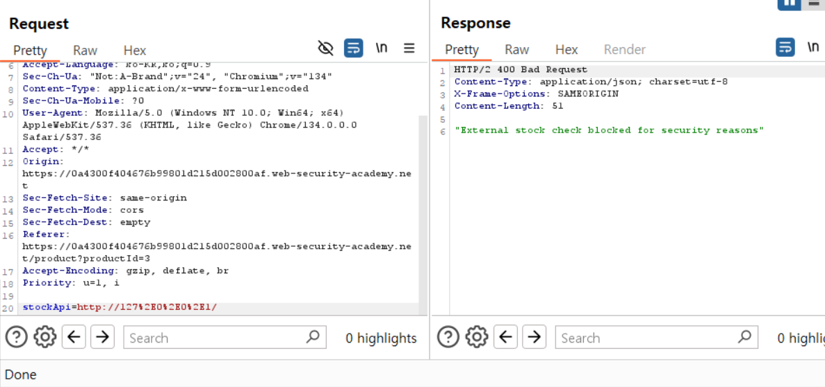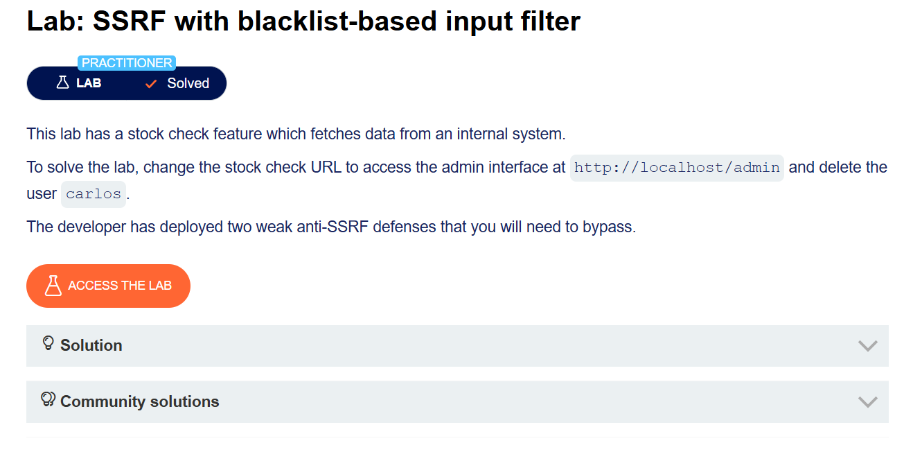 | SSRF with blacklist-based input filters 필터링 우회 (1) | 2025.04.03 |