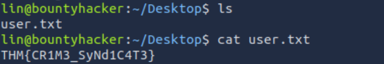 ssh 서버에 접속하고 ls 명령어를 쓰니 user.txt파일을 찾았다