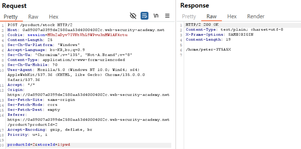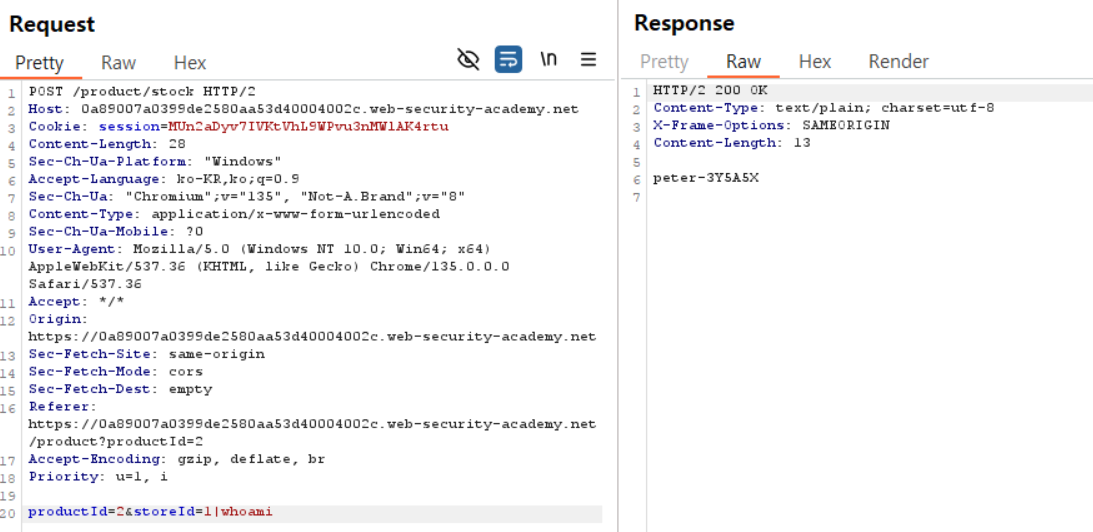 원래 과제 의도대로 storeId=1|whoami 를 실행하니