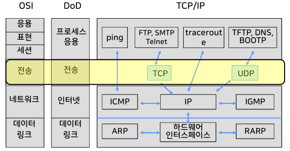 전송계층 프로토콜: UDP, TCP이 있음