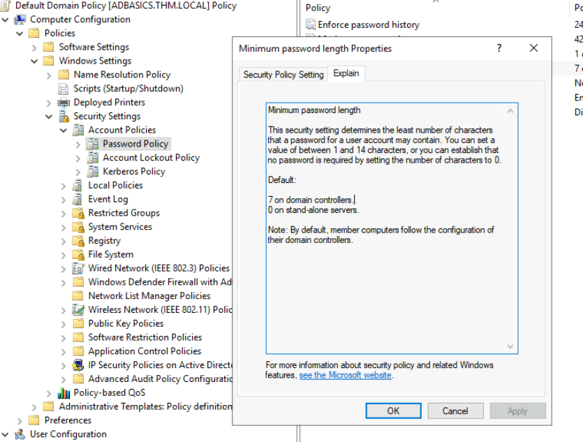 최소 패스워드 길이를 변경하려면 이것도 정책을 수정해야 함