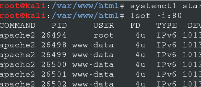 root@kali:/var/www/html# lsof -i:80