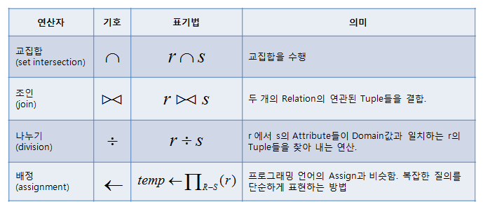 관계 데이터 모델: 2차원 테이블 형태로 구성
