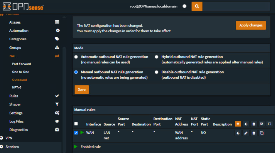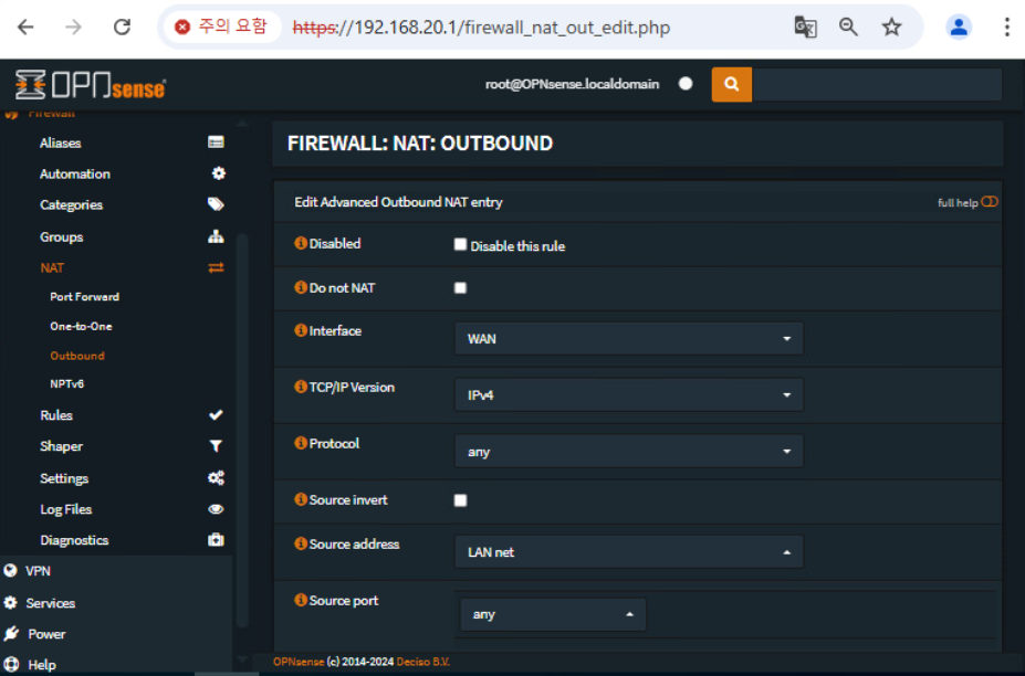 | Manual outbound NAT rule | 모든 규칙을 수동으로 설정 |
