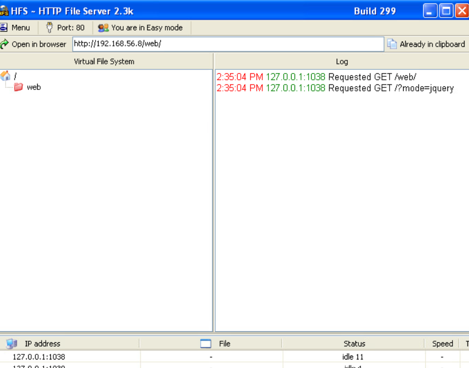 임시 웹서버 HFS를 실행해서 아까 만든 html 파일들이 들어있는