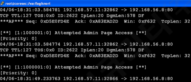 (sid:1000001;gid:1;uricontent:"/admin/adminwelcom.html";msg:"Attemped Admin Page Access";)