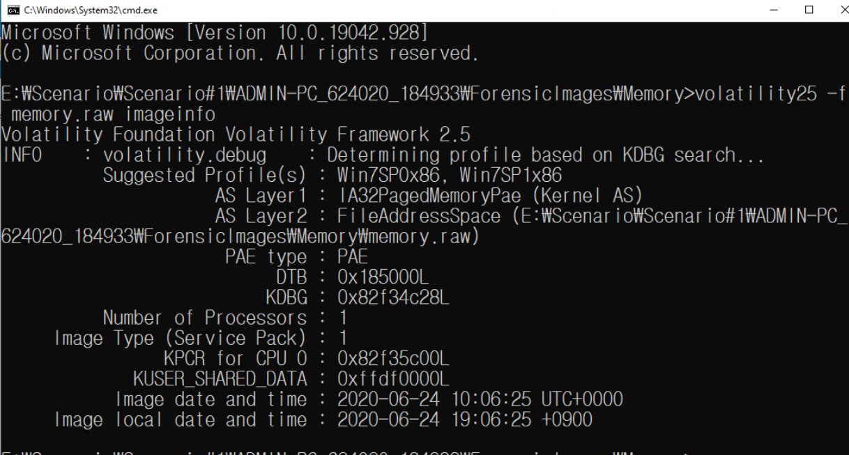 filepath..\..\Memory> volatility25 -f memory.raw imageinfo