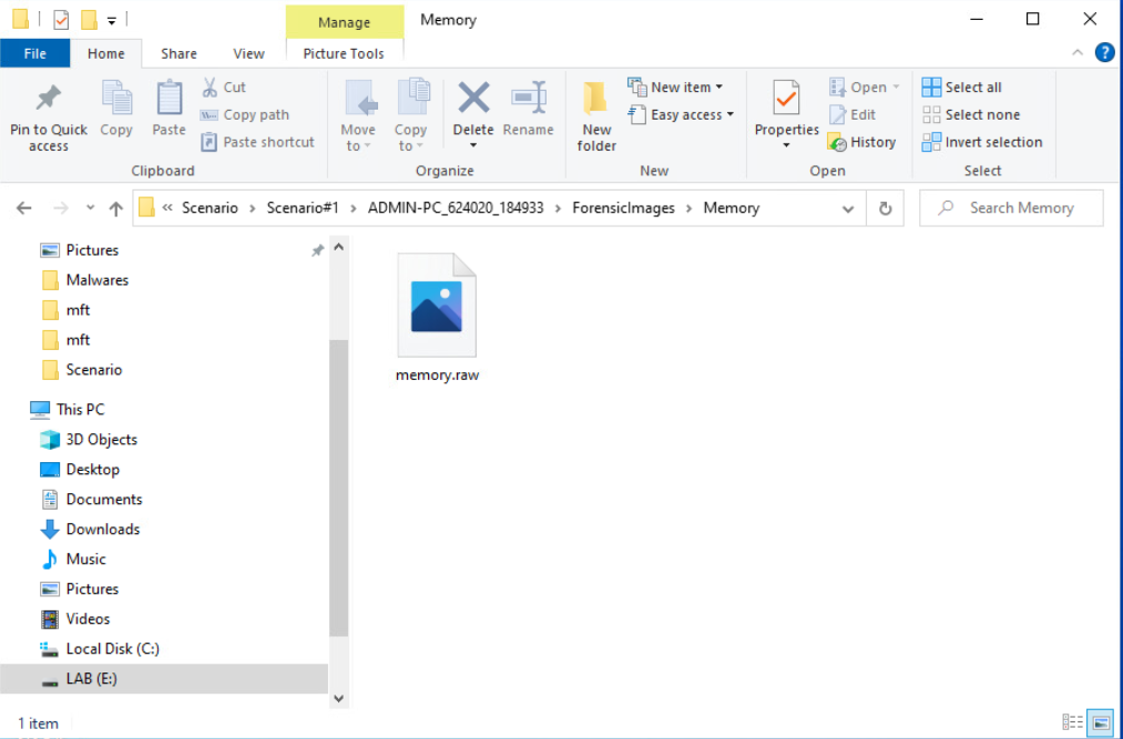 이미 자동화로 생성된 메모리 덤프 raw 파일이 있음