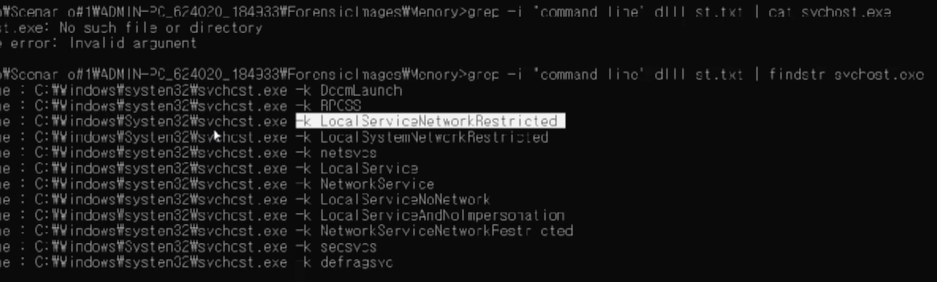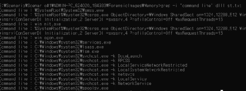 grep -i “command line” dlllist.txt → dlllist.txt 파일에서 해당 문자열 찾기