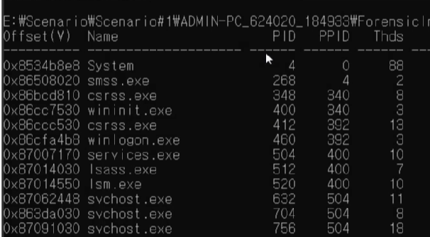 여기서 프로세스 관련 정보들(ex 생성시간, 종료시간, PID, DLL 등)을 추출했음