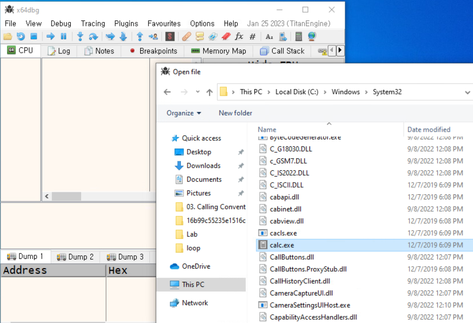 위에서 x64dbg안에 calc.exe를 실행했기 때문에