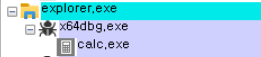 procexp64안에서도 x64dbg.exe의 하위에서 calc.exe가 위치해 있는 것이 확인된다.