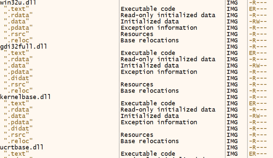 DLL 파일 로드 주소, 권한 등을 확인할 수 있음