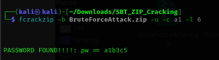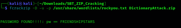 fcrackzip 툴을 이용해서 zip 파일의 비밀번호를 알아냈다. 좀 오래 걸리는 하는 듯..