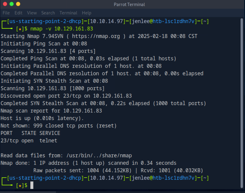 nmap 스캐닝을 해보니 tcp 23번 포트에서 telnet 이 확인된다