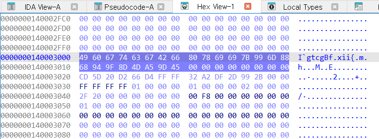 일단 byte_140003000에 hex 값으로 힌트를 찾을 수 있는지 보면