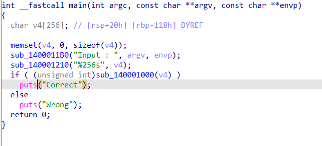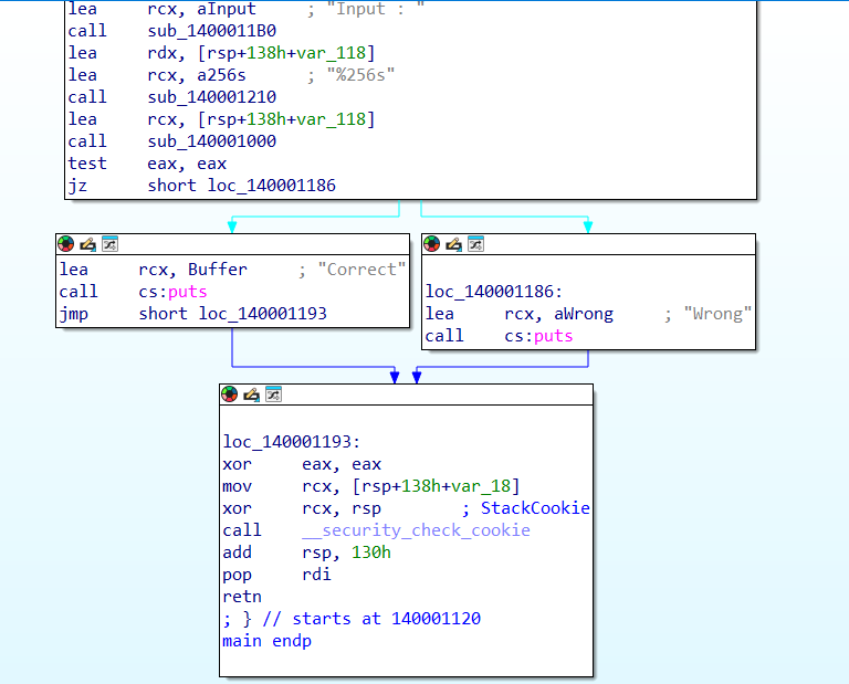 Correct를 출력하는 조건이 뭔지 loc_140001193을 살펴보자