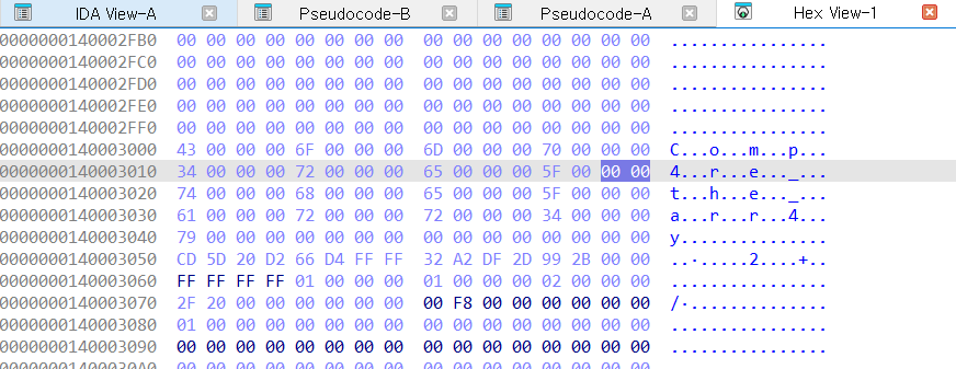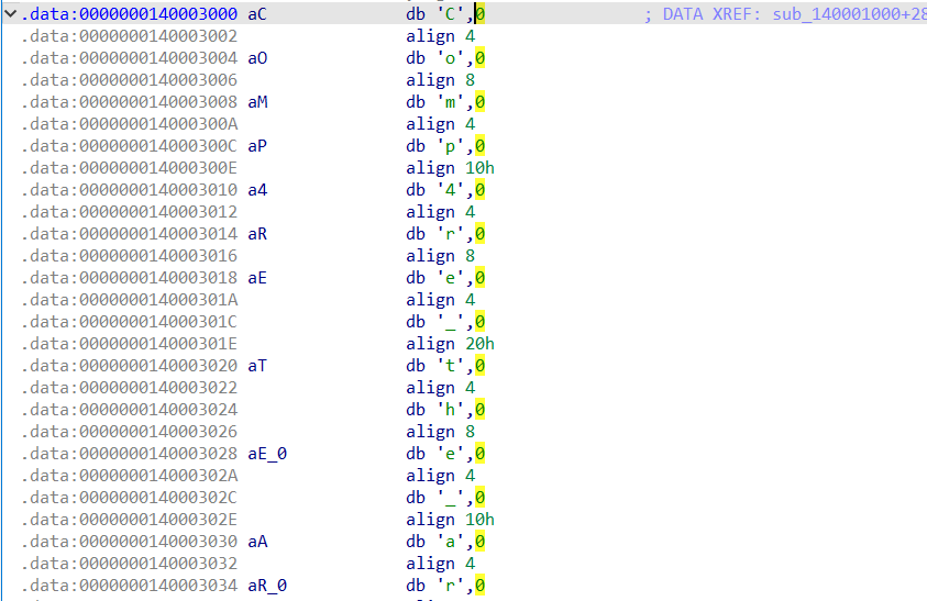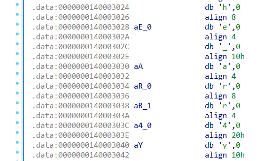 IDA-VIEW A에 보니까 글자들이 하나씩 있는게 보인다