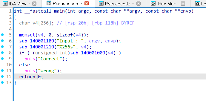 sub_1400011B0에서 인풋을 받고