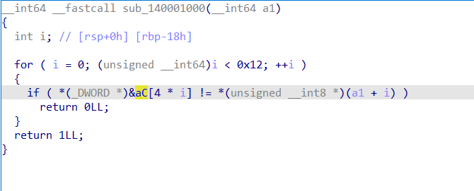 sub_140001000에서 값을 비교한다