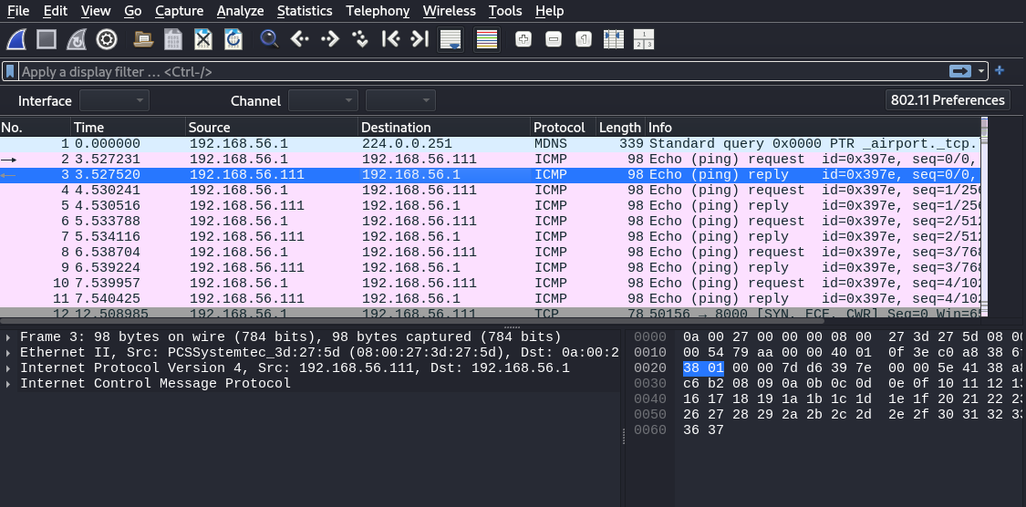 외이어샤크는 칼리 리눅스에 빌트인으로 이미 설치되어 있어서 참 편하다