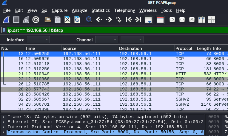 tcp 윈도우 사이즈 값이 8000보다 크거나 같은 파켓을 필터링함