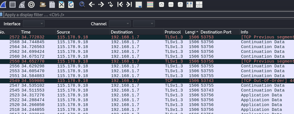 피해자 호스트로부터 ack 응답을 받은 파켓들을 찾아보니