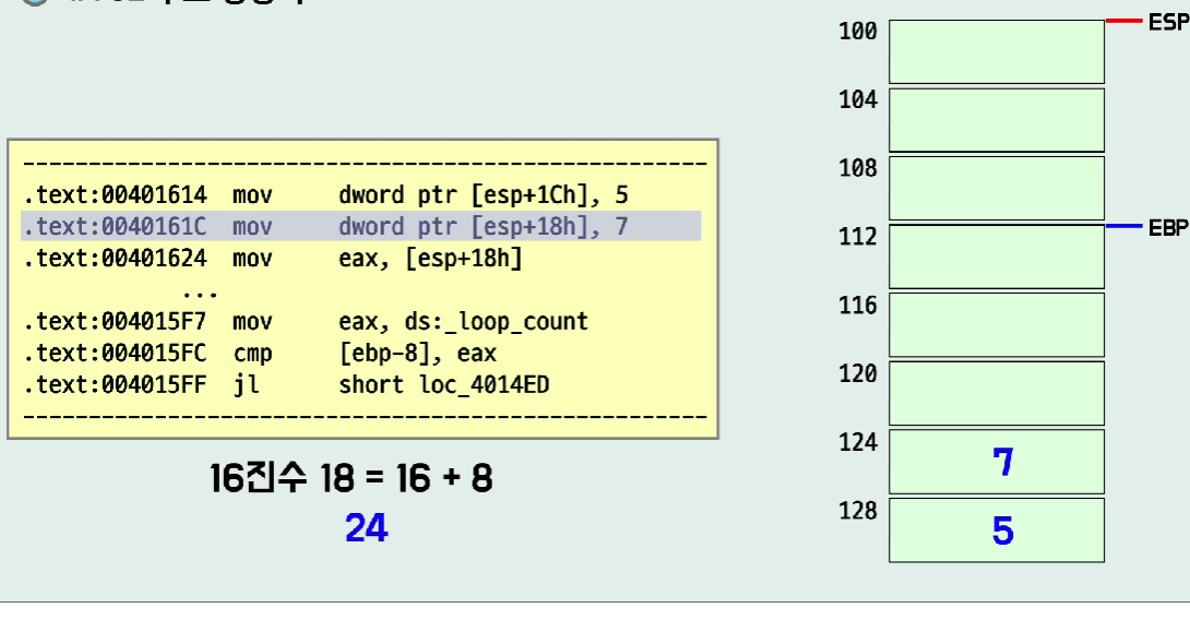push: 피연산자를 스택메모리 최상단에 입력해 ESP 변화