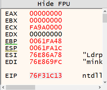 다음에 실행되는 프로세스를 볼려면 EIP 레지스터를 보면 되는데 76f31c13이다