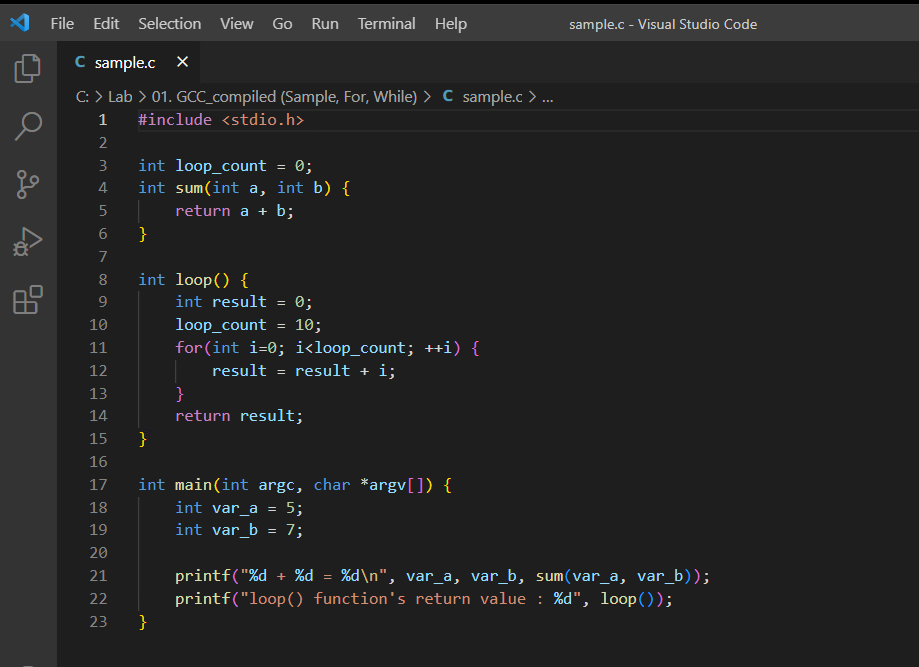 sum 함수는 12를 출력하고 두번째 loop 함수는 1부터 9까지의합인 45를 출력하는 코드다