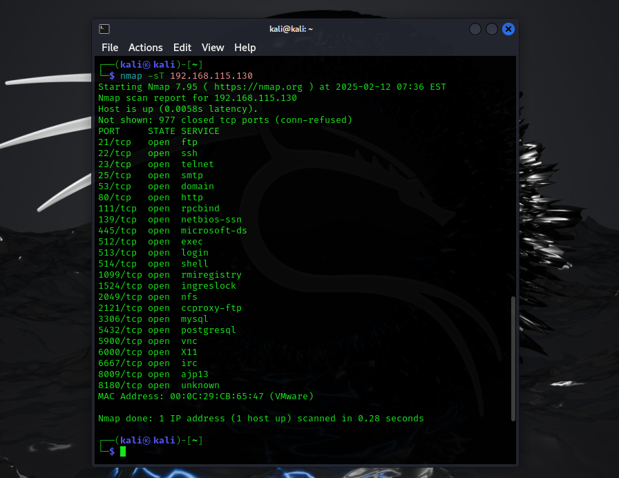 Kali linux가 연동되어 있어야 nmap으로 분석이 가능하다
