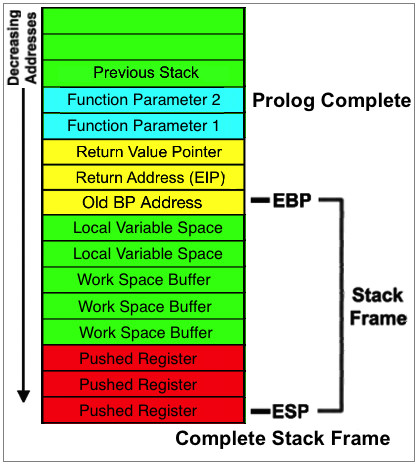 - EBP: 함수의 스택 프레임 시작주소 /Base Pointer → 고정