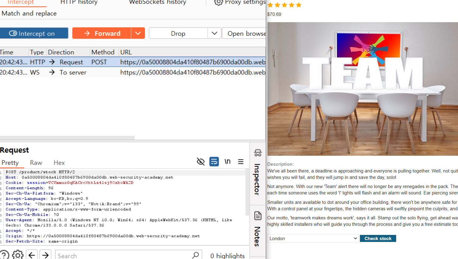 일단 burpsuite으로 재고확인하는 파켓부터 인터셉트해보자