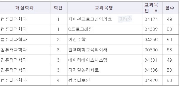편입 첫 학기라서 난이도가 낮은 근본과목 위주로 수강하긴 했지만,
