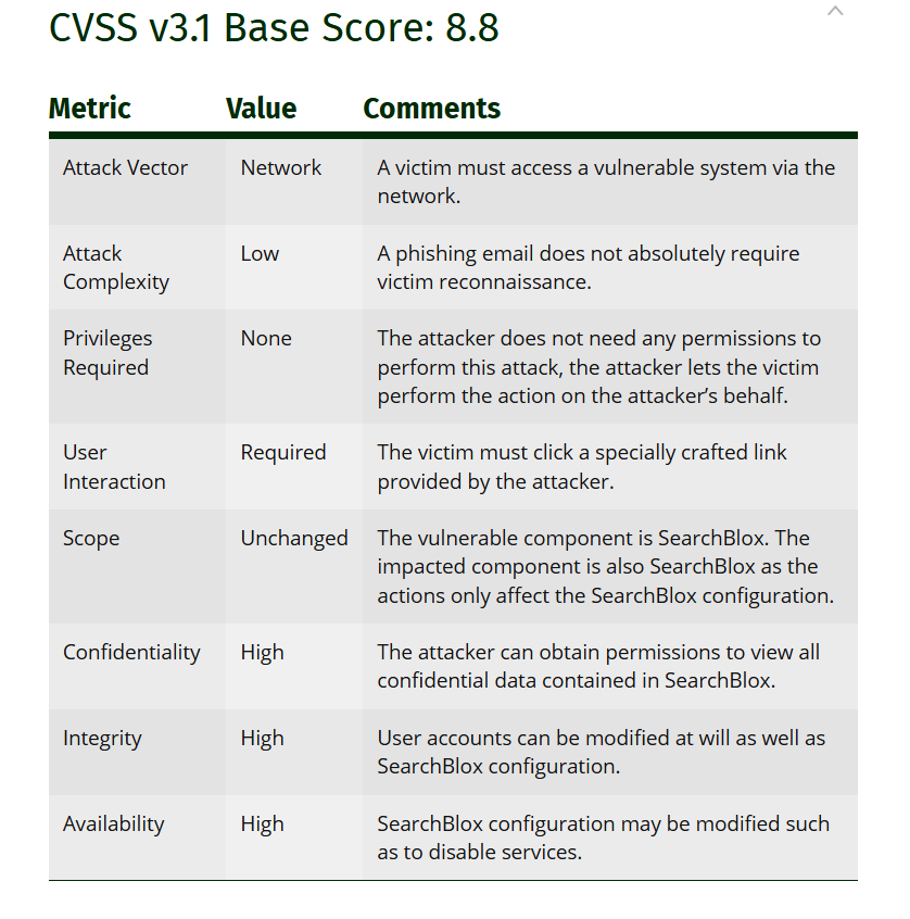 기밀성 가용성 무결성 정보보안의 3 요소가 모두 High이고 8.8점인 꽤 높은 점수이다