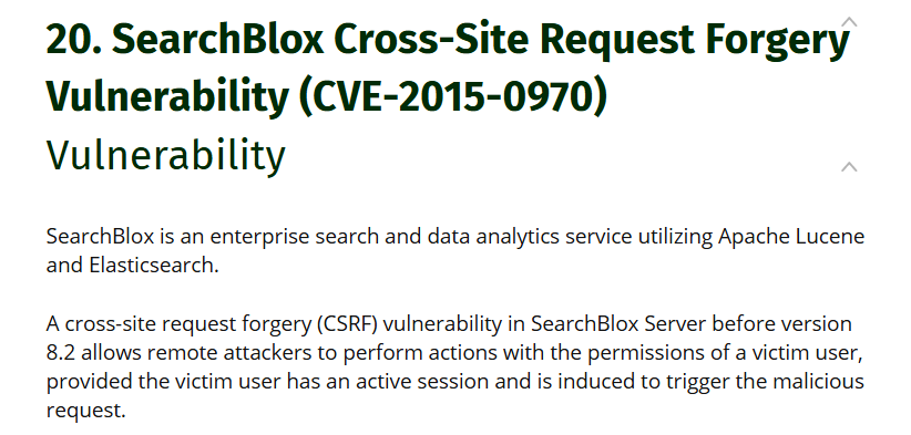 SearchBlox라는 서치와 데이터 분석 서비스의 CSRF 취약점이다
